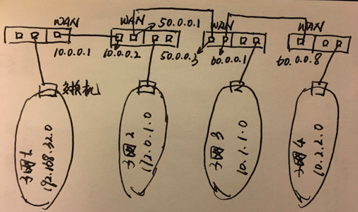 每个子网单独连接一个路由器,然后再由路由器连接其它路由器,注意有
