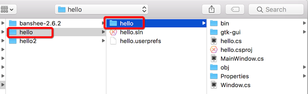 工程生成以后,会在 Location /Users/mac/workspace/mono/hello 目录中生成项目 hello;