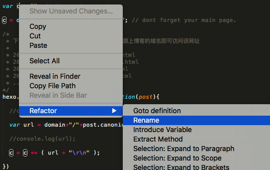 安装步骤参考 https://packagecontrol.io/packages/JavaScript%20Refactor