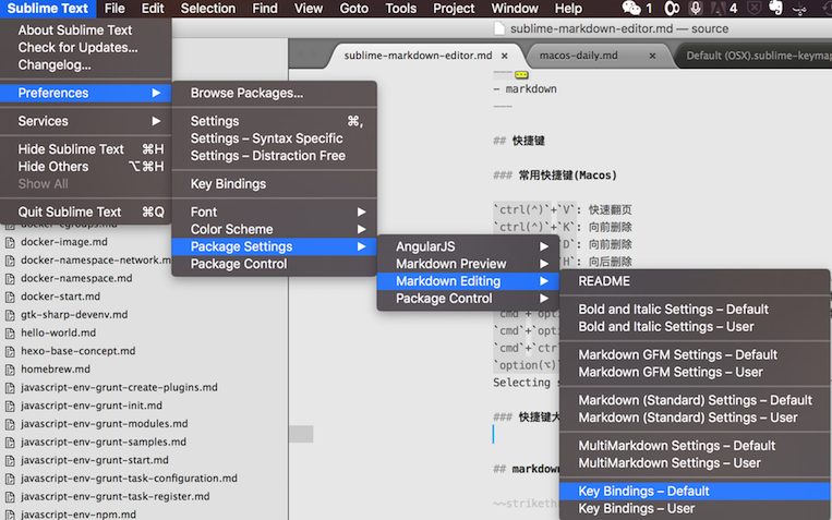 key bindings - Default, 该文件中保存了所有可用的快捷键。