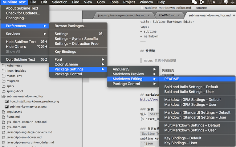 - 使用 cmd + shift + P 或者 Preferences -> Package Control 打开 Package Control,