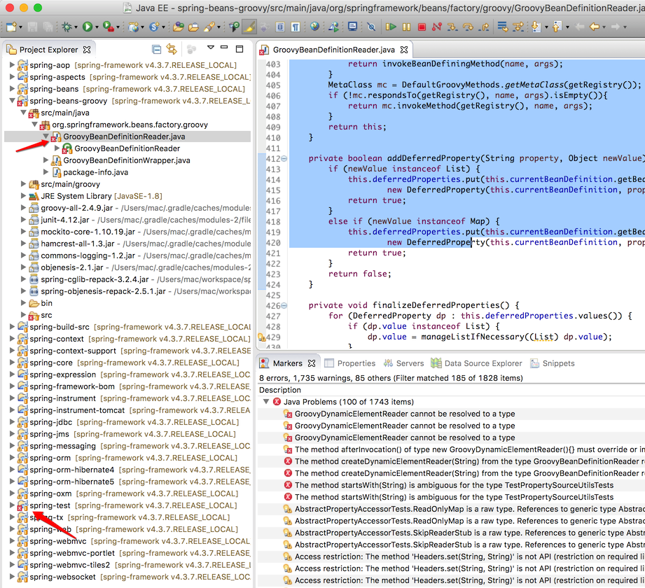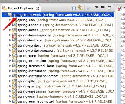 Spring 4.3.7 Release 的源码是构建在 Gradle 构建环境之上的;所以首先需要安装 Eclipse Gradle Plugin STS;