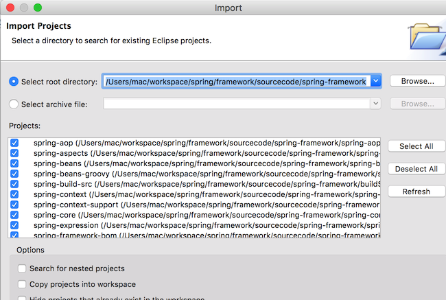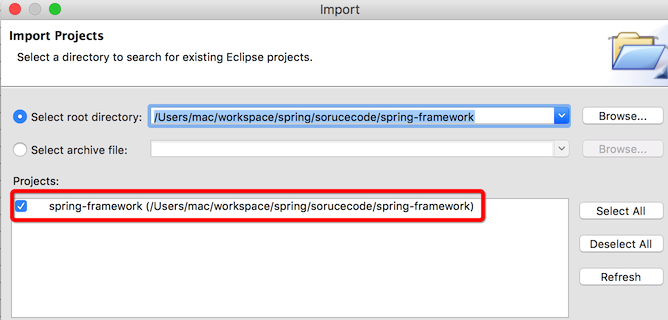 + When prompted \for the 'root directory', provide /Users/mac/workspace/spring/framework/sourcecode/spring-framework.