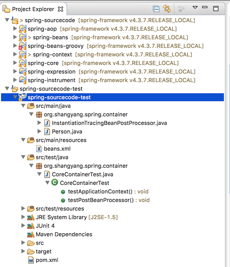 为了在分析源码的时候,不涉及其它不相干的包,我新建了一个测试工程,然后从 spring-framework 项目中引入需要的包即可;