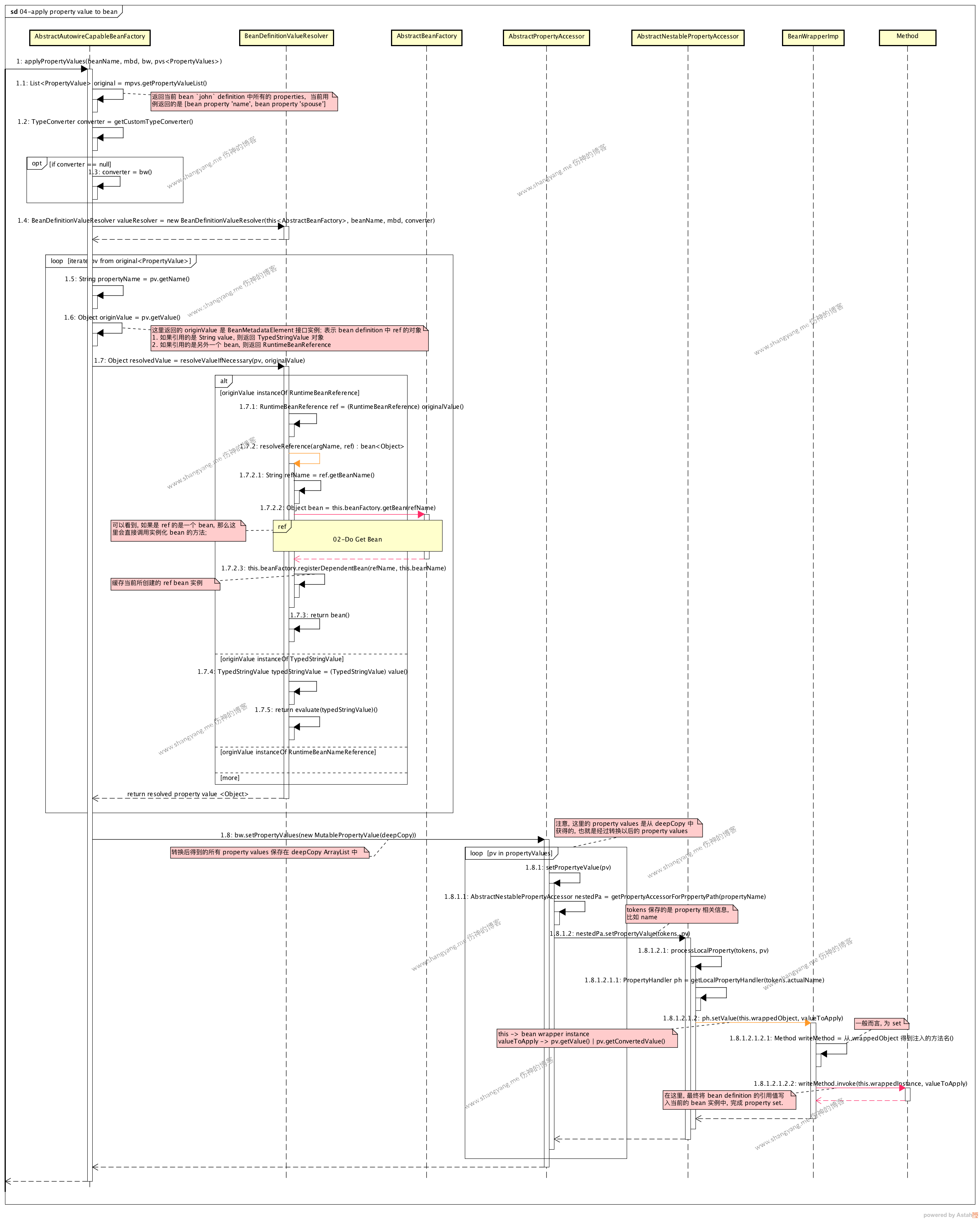 解析 bean definitiions 并注册到当前的 BeanFactory 中;此步骤是在 step 1.1.1.2 obtainFreshBeanFactory 完成;更详细的介绍参考解析并注册 bean definitions 流程从 #1 中找到所有的已注册的 singleton bean definitions,遍历,实例化得到 Singleton beans;此步骤对应的是 step 1.1.1.11 finishBeanFactoryInitialization 开始进行 singleton bean 的构造过程,其后调用