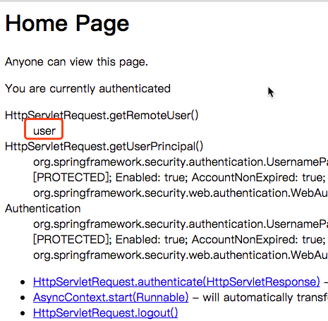 看到这里,大家或许会有疑问,没有看到 login page 的配置信息,也没有看到登录成功以后跳转页面的配置,Spring Security 是怎么知道 login page 和登录成功以后的跳转页面的?这部分内容将会在后续的源码分析中进行描述;