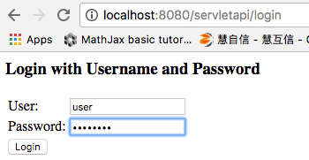 直接将该 demo 作为 Tomcat Web Server 启动,然后在浏览器中输入 http://localhost:8080/servletapi/login 输入默认的用户名密码 user / password,就可以登录了;