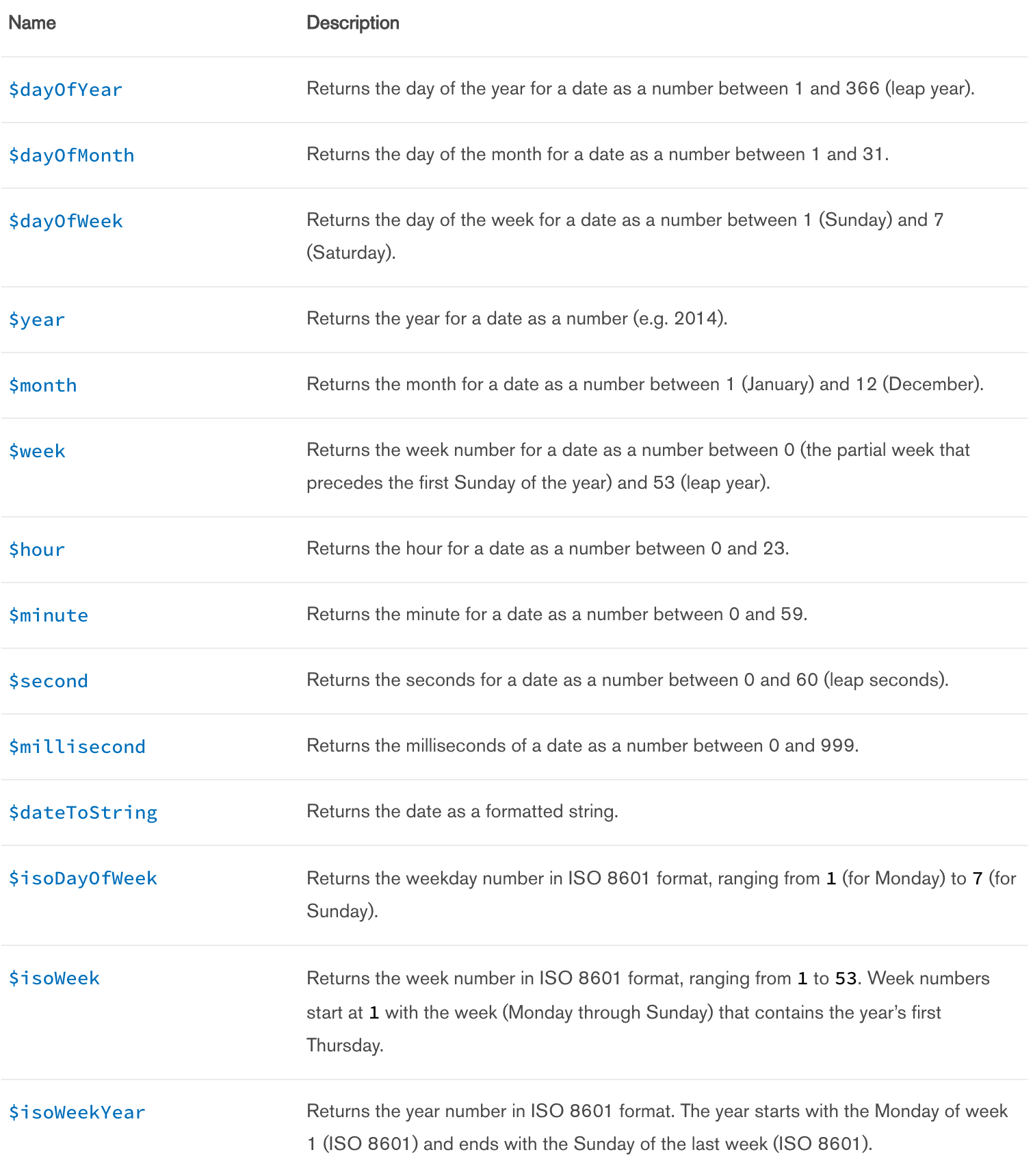 https://docs.mongodb.com/manual/reference/operator/aggregation/#date-operators
