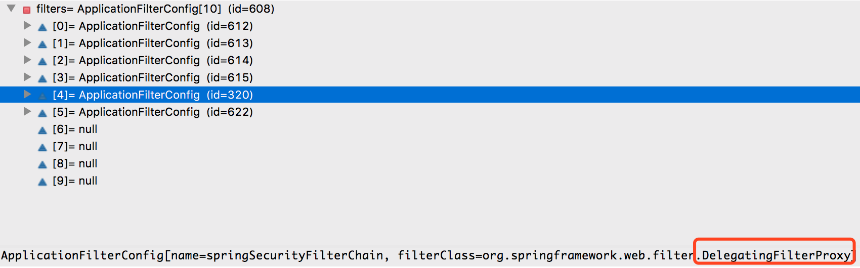 - ApplicationFilterConfig[name=springSecurityFilterChain, filterClass=org.springframework.web.filter.DelegatingFilterProxy]