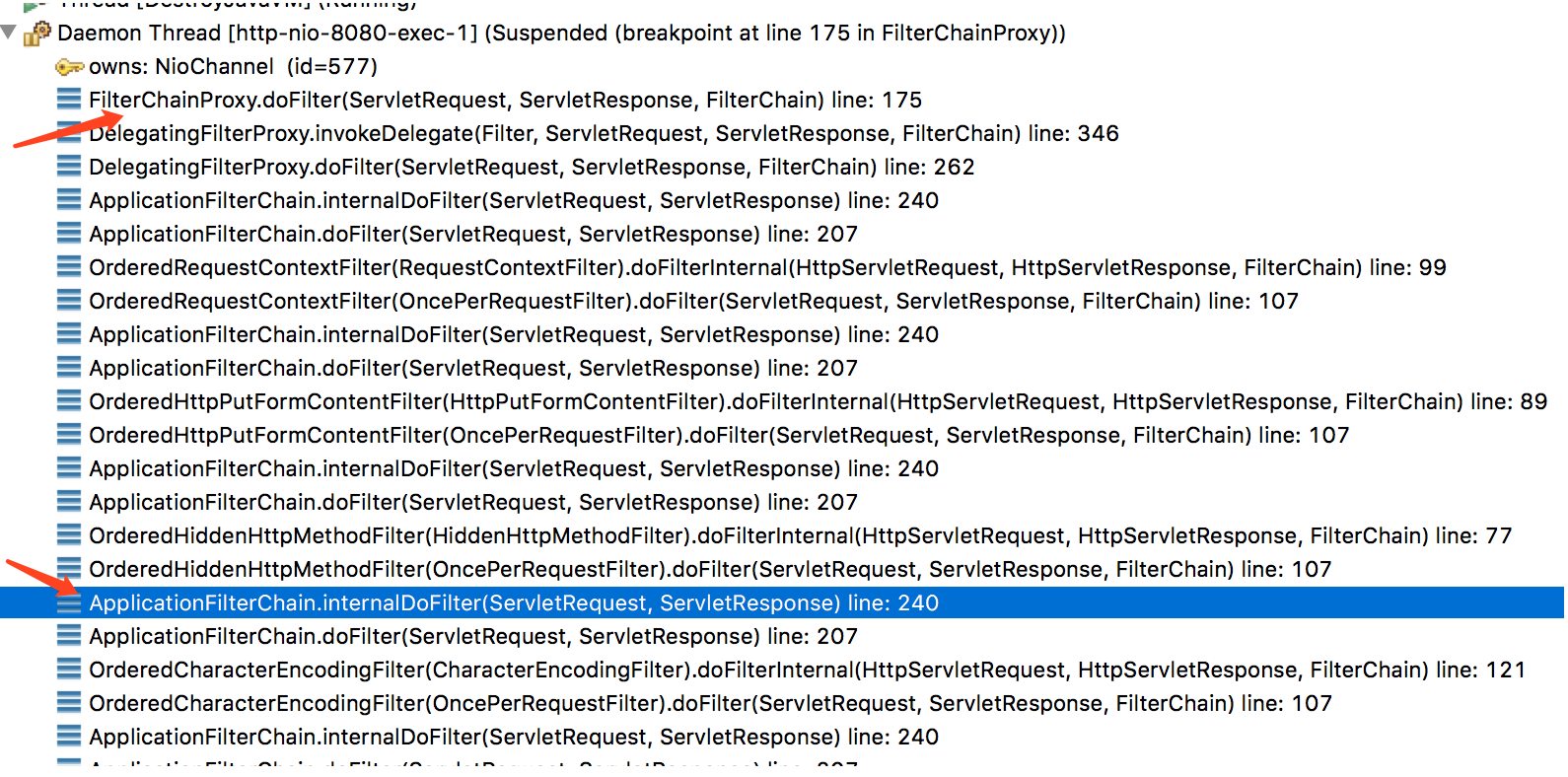 对象上,DelegatingFilterProxy 然后将此请求转发给FilterChainProxy