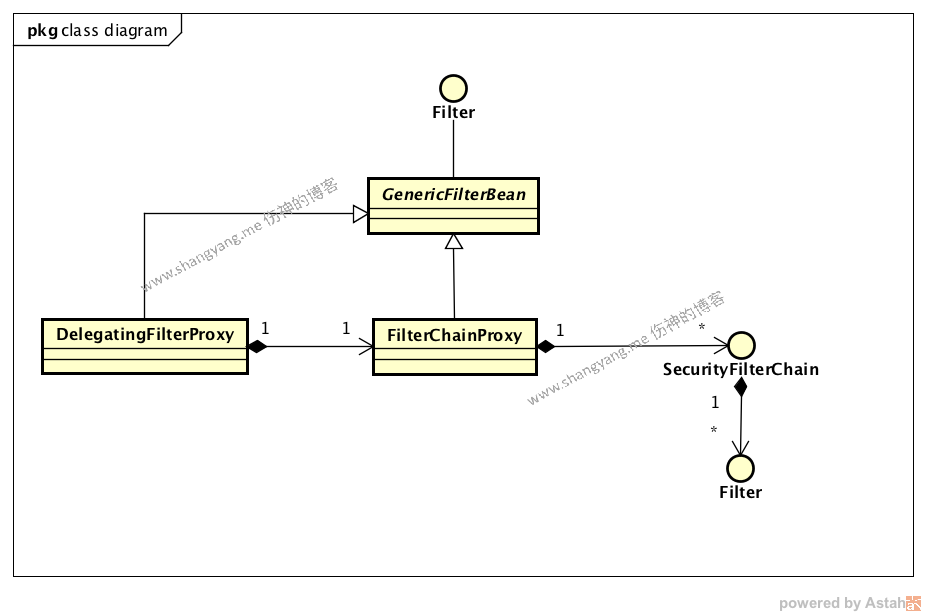 1 | public class DelegatingFilterProxy extends GenericFilterBean { |