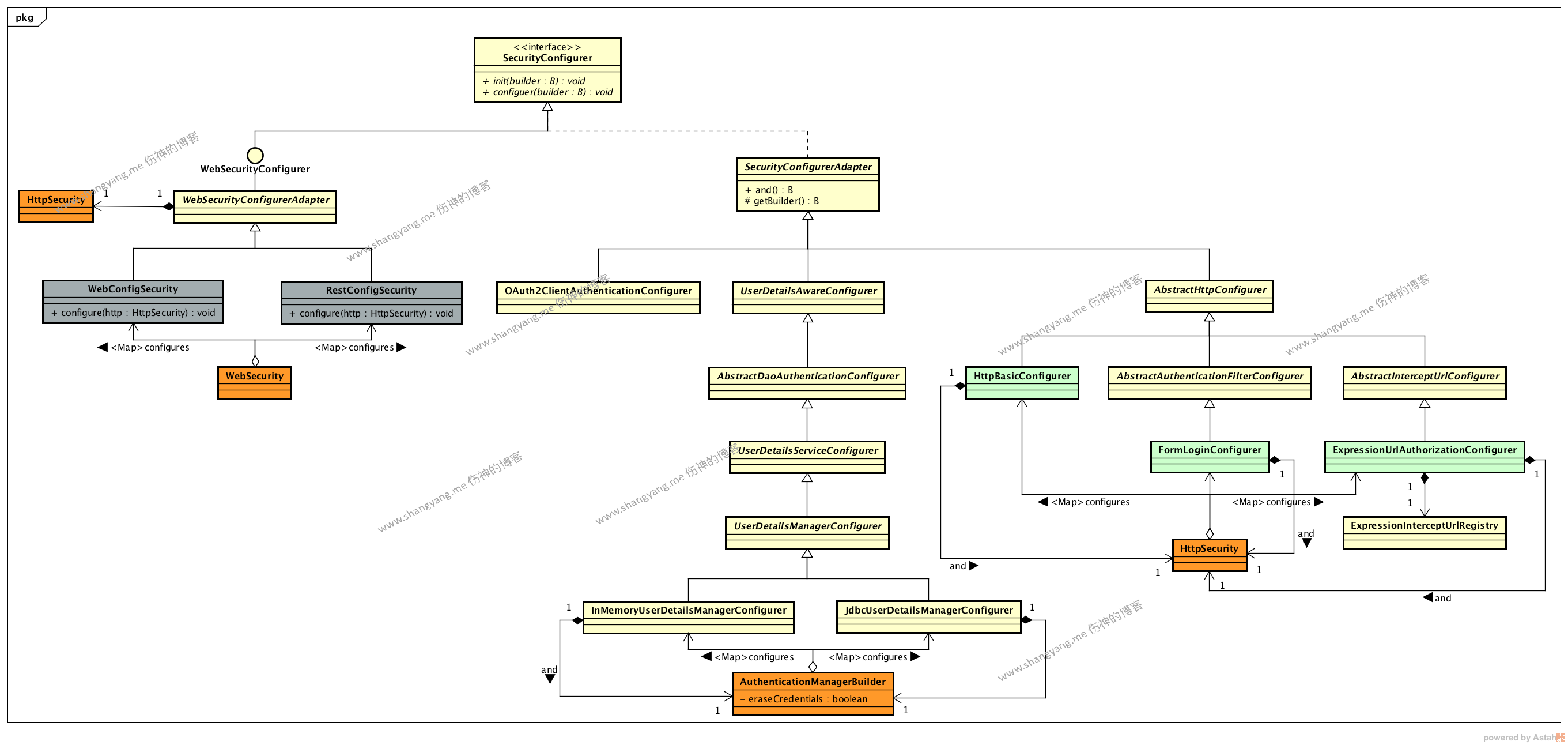下面这张类图正是前叙文章中所介绍到的有关 SecurityConfigurer 的全景图;
