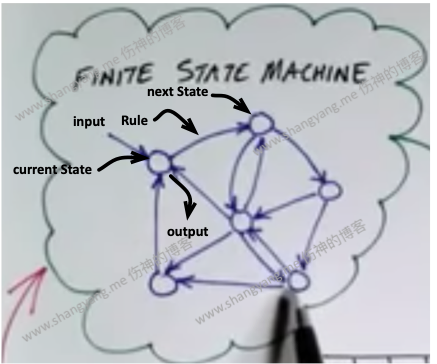 图灵机其实是一个带规则的有限状态机,什么是有限状态机,看一张概念图,