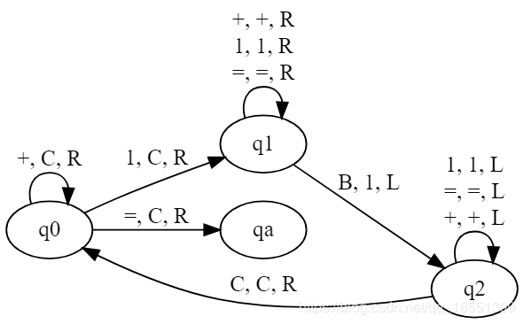 那么要如何使用图灵机完成该运算呢?我们定义如下图灵机规则,1